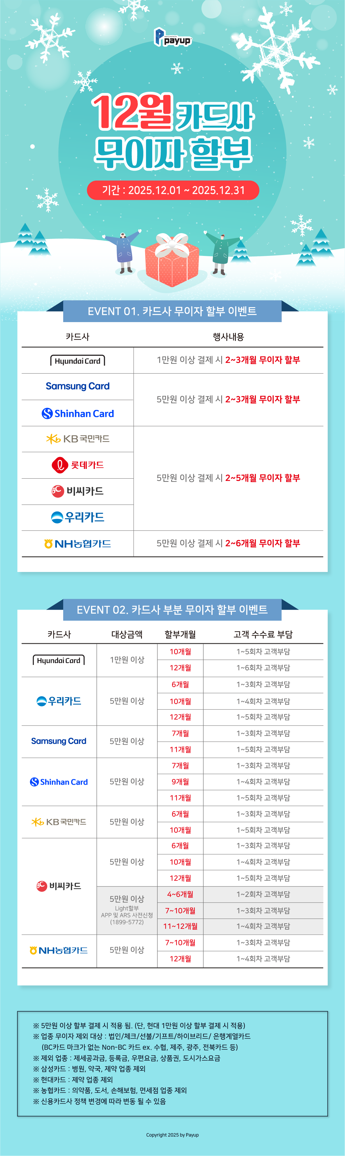 2025년 12월 페이업 신용카드 무이자할부 안내 내용