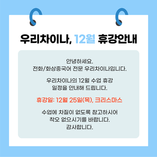 우리차이나 12월 휴강 안내