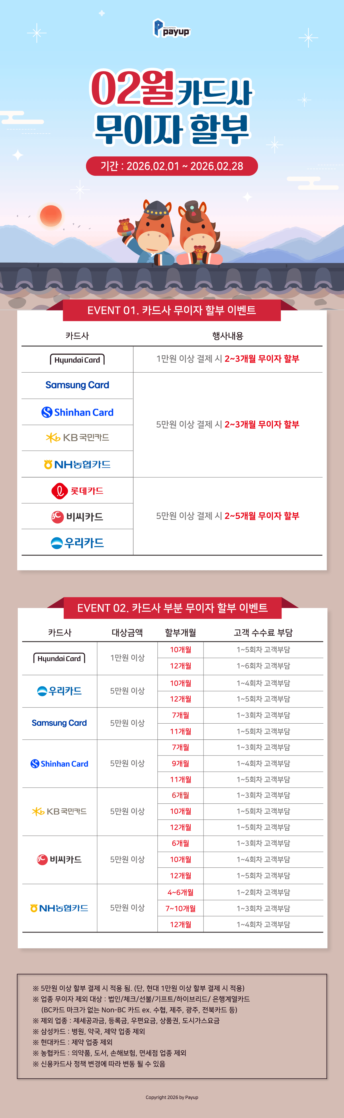 2026년 2월 페이업 신용카드 무이자할부 안내 내용